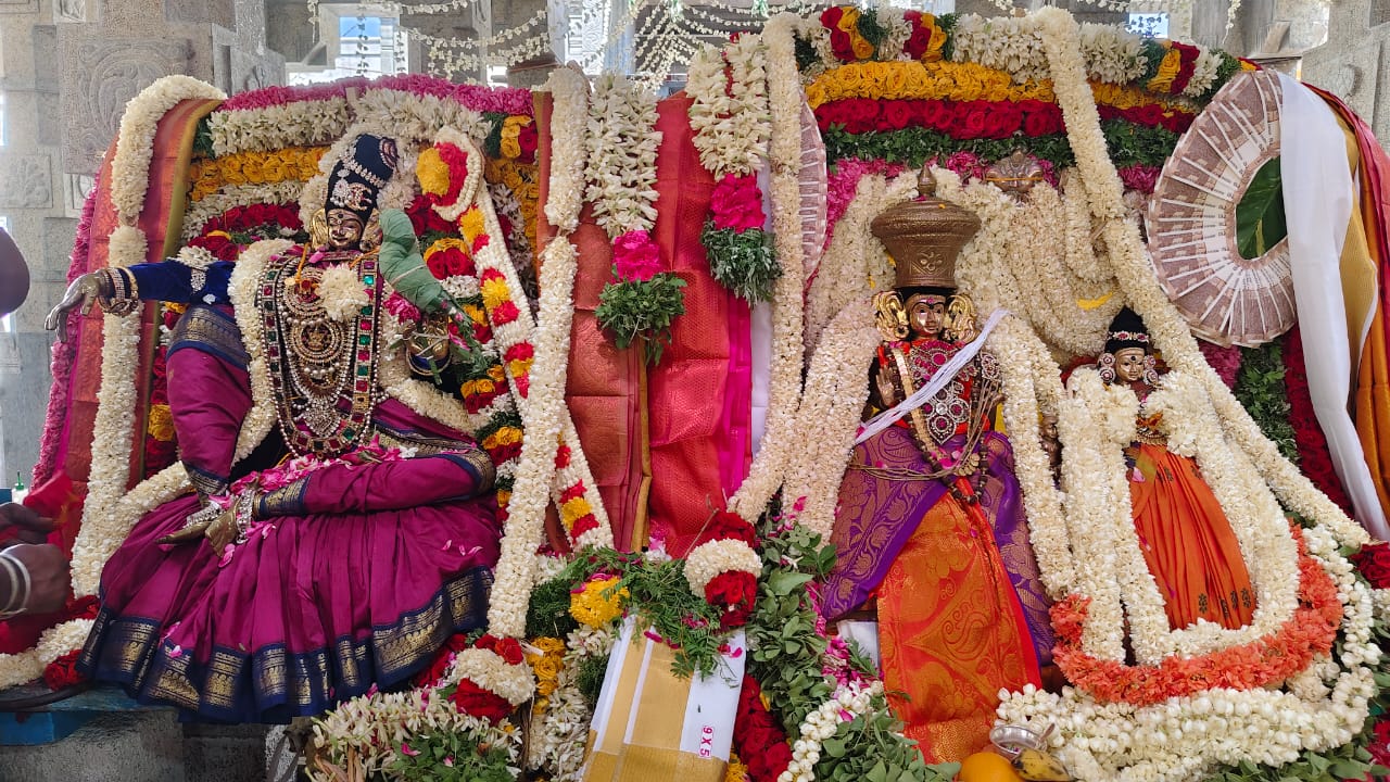 முன்னிட்டு கொடி மரத்திற்கு வேத மந்திரங்கள் முழங்க அபிஷேக ஆராதனை நடைபெற்றது. அதனைத் தொடர்ந்து கொடியேற்றம் நடைபெற்றது. தினசரி மாலையில் சுவாமி, அம்பாள் பல்வேறு வாகனங்களில் திருவீதி உலா நடைபெற்றது .3 ம் நாள் திருவிழாவான திருக்கல்யாணம் இந்து அறநிலை துறைக்கு பாத்தியப்பட்ட அருள்மிகு மாயூர்நாதர் கோவில் பட்டர் கார்த்திக் மற்றும் வேத பட்டர்கள் வேத மத்திரங்கள் மூலங்க . சுவாமிக்கும், சிவகாமி அம்பாளுக்கும் திருக்கல்யாணம் சிறப்பாக நடைபெறுகிற்றது