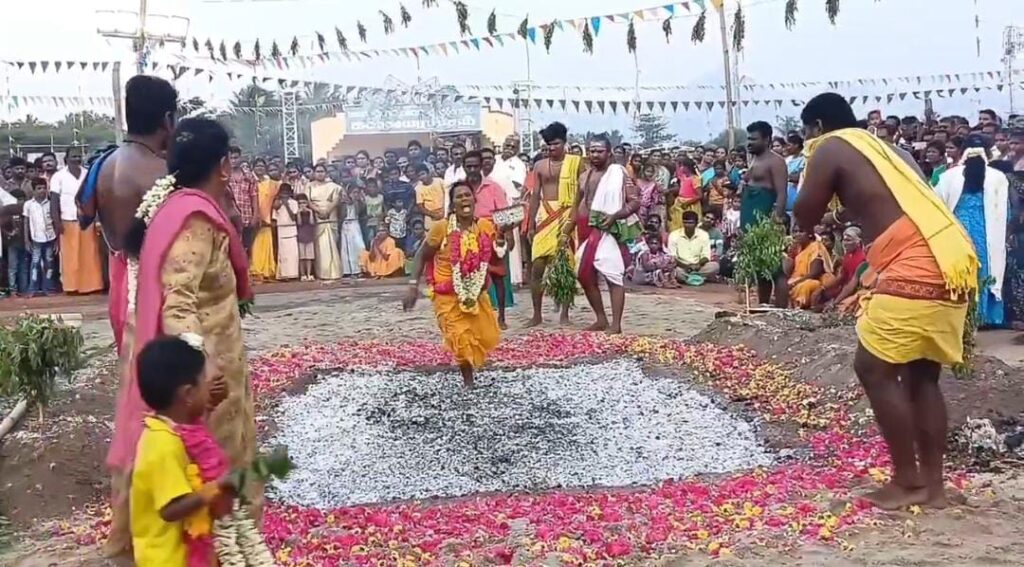 தொடர்ந்து இரண்டாம் நாளான இன்று முக்கிய நிகழ்வாக ஏராளமான பக்தர்கள் வைகை மாரியம்மன் கோவிலுக்கு அக்னி சட்டி எடுத்தும், அலகு குத்தியும் ஊர்வலமாக வந்து கோவில் முன்பு உருவேற்றப்பட்டிருந்த அக்னி குண்டத்தில் பூக்குழி இறங்கி நேர்த்திக் கடன் செலுத்தினர்.
