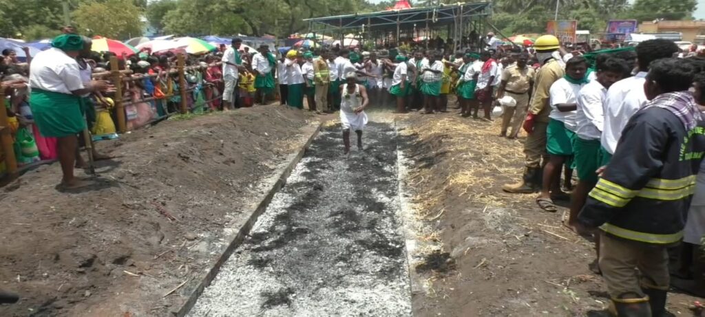 கரூர் மாவட்டத்தில் தமிழகத்திலேயே அதிகபட்சமாக வெயில் தாக்கம் உள்ள நிலையில் சரியாக 12.30 மணியளவில் கடும் வெயிலிலும் பக்தர்கள் தங்களது நேர்த்திக்கடனை செய்தனர்.