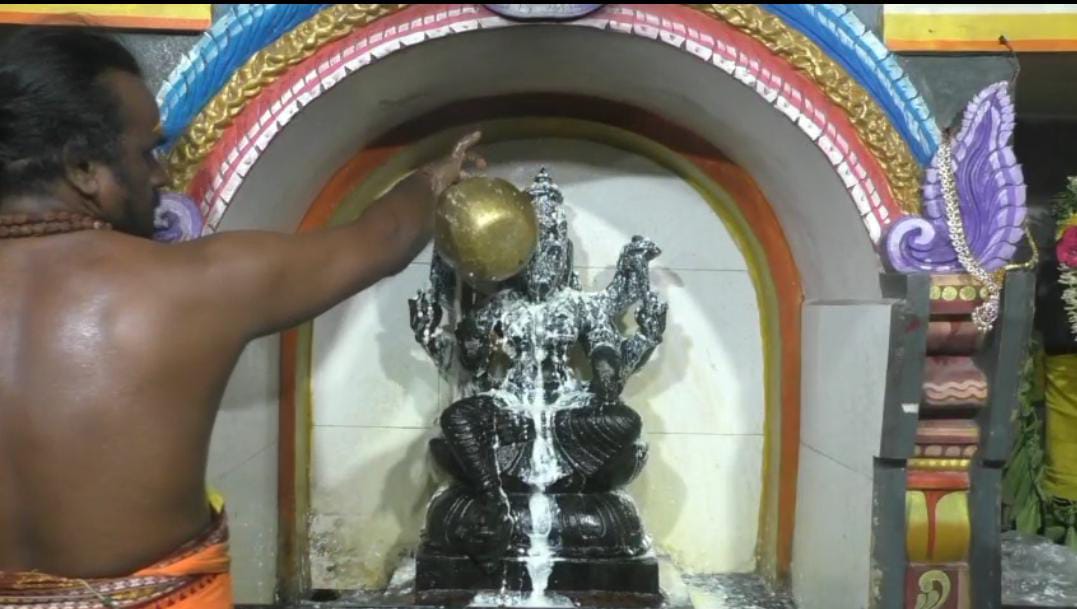பஞ்சமி திதியை முன்னிட்டு, பல்வேறு வாராஹி அம்மன் ஆலயங்களில் சிறப்பு அபிஷேகம் மற்றும் அலங்கார நிகழ்ச்சிகள் நடைபெற்று வரும் நிலையில் கரூர் மாநகராட்சிக்கு உட்பட்ட மினி பேருந்து நிலையம் கற்பக விநாயகர் ஆலயத்தில் வீற்றிருக்கும் வாராகி அம்மனுக்கு சித்திரை மாத பஞ்சமி திதியை முன்னிட்டு சுவாமிக்கு இன்று எண்ணை காப்பு சாற்றி, பால், தயிர், பஞ்சாமிர்தம், தேன், நெய், இளநீர், திருமஞ்சள், மஞ்சள், சந்தனம், அபிஷேக பொடி, அரிசி மாவு, பன்னீர் உள்ளிட்டு வாசனை திரவியங்களால் சிறப்பு அபிஷேகம் நடைபெற்றது.