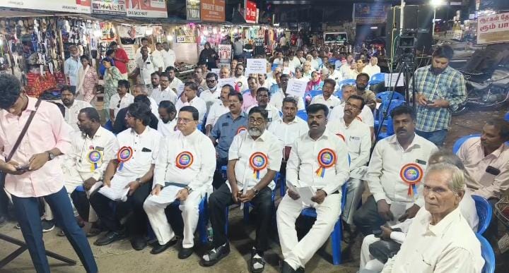 300 திருச்சபைகளுக்கான கல்லறை நிலத்தை அரசு உடனடியாக வழங்க வேண்டும் என வலியுறுத்தி, சென்னை பல்லாவரம் பேருந்து நிலையம் அருகே பல்லாவரம் கிறிஸ்தவ பொதுக் கல்லறை கூட்டமைப்பு சார்பில் கவன ஈர்ப்பு பொதுக்கூட்டம் நடைபெற்றது.