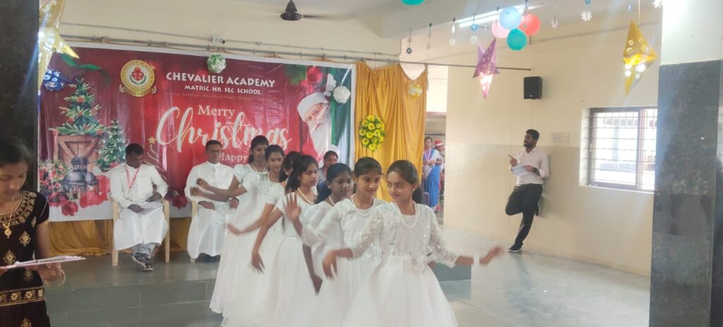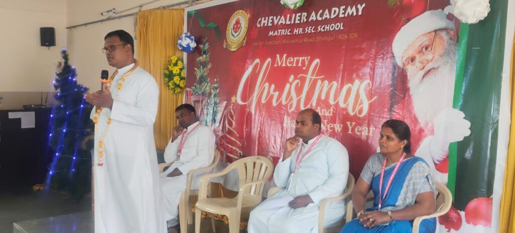 திண்டுக்கல் செவாலியர் அகாடமி மெட்ரிக் மேல்நிலைப் பள்ளியில் கிறிஸ்துமஸ் விழா நடந்தது. பள்ளி தாளாளர் அருட் தந்தை சேசு ஆரோக்கியம் தலைமை வகித்தார். நிர்வாக அதிகாரி அருட்தந்தை ஜான் பிரிட்டோ முன்னிலை வகித்தார்.