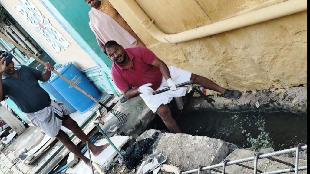திருச்சி மாவட்டம், துறையூர் நகராட்சிக்குட்பட்ட மூன்றாவது வார்டு பகுதியில் சுமார் 500க்கும் மேற்பட்ட குடும்பங்கள் வசித்து வருகின்றனர், இப்பகுதிகளில் தொடர்ந்து கழிவுநீர் செல்லும் சாக்கடையை தூர்வாறாததால் கழிவுநீர் தேங்கி துர்நாற்றம் வீசி தொற்றுநோய் பரவும் அபாயம் ஏற்படுவதாக 3 வது வார்டு நகர் மன்ற உறுப்பினர் (திமுக) கார்த்திகேயன் நகராட்சி ஆணையர் சுரேந்தர்ஷா விடம் பலமுறை கூறியும் நடவடிக்கை எடுக்கவில்லை என கூறுகிறார், தொடர்ந்து நகராட்சியில் பணியாற்றும் தூய்மை பணியாளர்களை மூன்றாவது வார்டு பகுதிகளில் சென்று மக்களிடம் வரி பணம் கேட்டு வசூல் செய்வதை வழக்கமாகக் கொண்டுள்ளதாகவும் இதனால் தூய்மை பணியாளர்கள் தூய்மை பணியை மேற்கொள்ளவில்லை என குற்றம் சாட்டி மூன்றாவது வார்டு பகுதிகளில் உள்ள கழிவு நீர் சாக்கடை கால்வாயில் நகர் மன்ற உறுப்பினர் கார்த்திகேயன் தானே கழிவு நீரில் இறங்கி கால்வாயை தூர்வாரினார்.