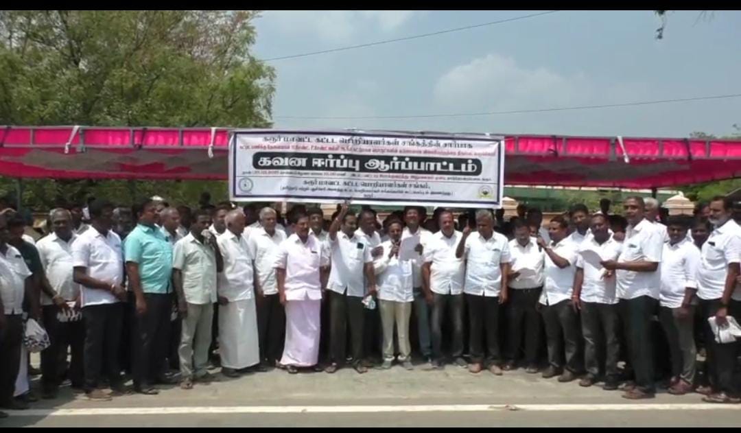 கரூர் மாவட்ட கட்டட பொறியாளர் சங்கத்தின் சார்பாக, வட்டார போக்குவரத்து அலுவலகம் முன்பு நடைபெற்ற கண்டன ஆர்பாட்டத்தில் ஈடுபட்டனர்.