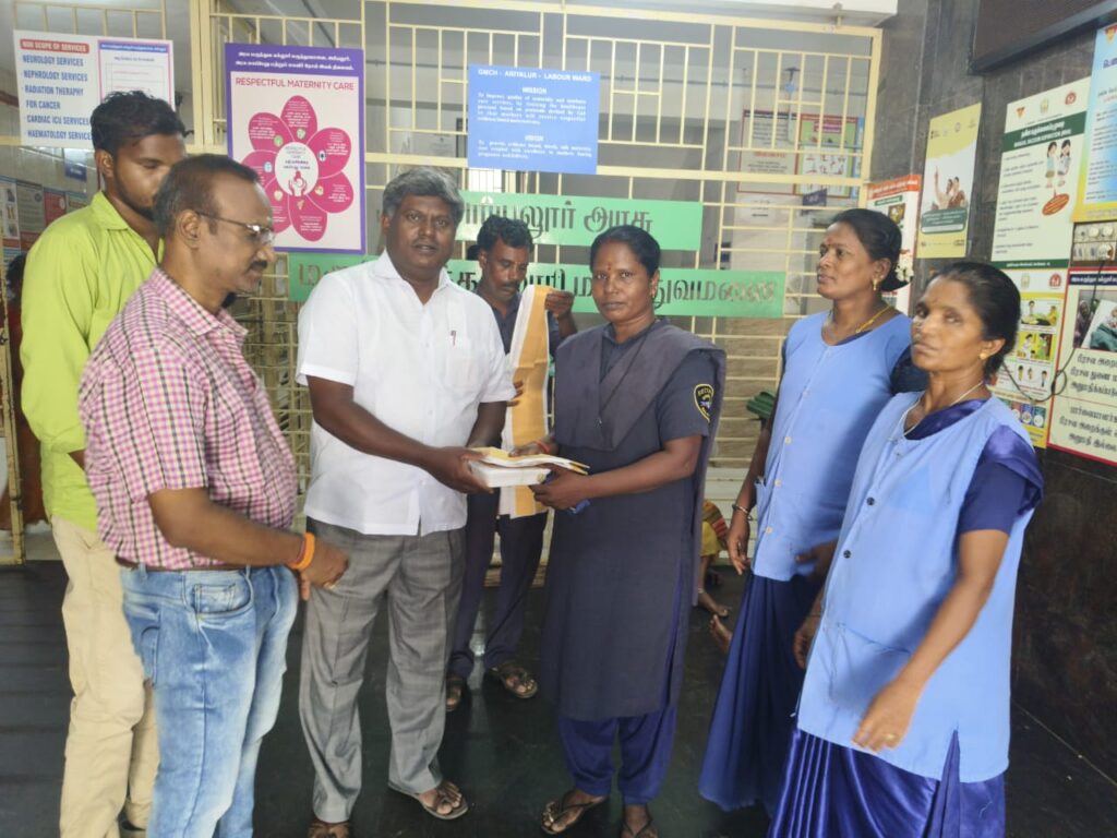 அரியலூர் அரசு மருத்துவமனை தூய்மை பணியாளர்களுக்கு, கட்டிட பொறியாளர்கள் இனிப்புகள் வழங்கும் நிகழ்ச்சி நடைபெற்றது.
