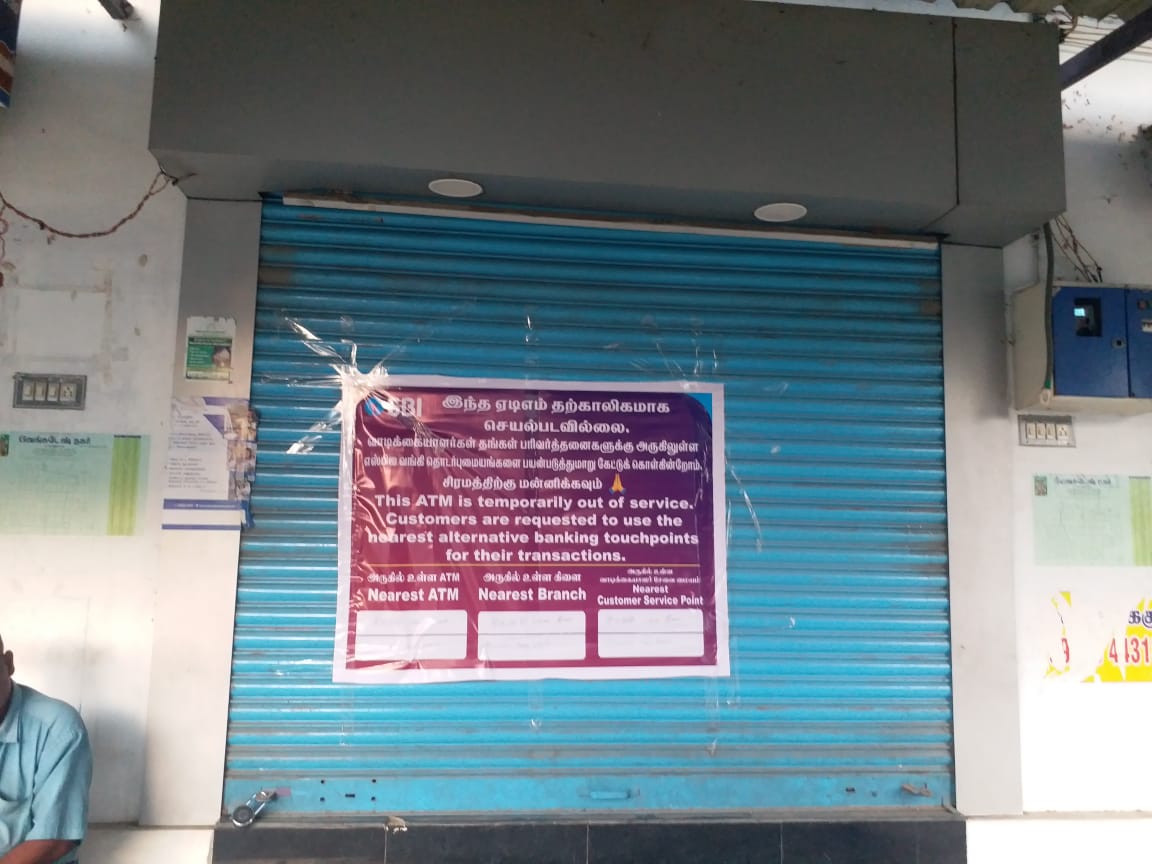 விருதுநகர் மாவட்டம் சிவகாசி அருகே உள்ள மடத்துபட்டி கிராமத்தில் சிவகாசி ஸ்டேட் பேங்கில் இருந்து ஏடிஎம் மையம் செயல்பட்டு வருகிறது. இதில் தாயில்பட்டி, வெம்பக்கோட்டை, எட்டக்காபட்டி,எதிர் கோட்டை, உள்ளிட்ட சுற்றுவட்டாரத்தை சேர்ந்த 30க்கும் மேற்பட்ட கிராம மக்களும் மற்றும் அரசு ஊழியர்களும் பணவரவுகள் செய்து வந்தனர். இந்நிலையில் திடீரென ஏடிஎம் மையம் செயல்படாது என சிவகாசி ஸ்டேட் வங்கியில் இருந்து அறிவிப்பு ஒட்டப்பட்டுள்ளது. அருகில் வேறு ஏடிஎம் மையம் இல்லாததால் பணம் எடுக்க முடியாமல் இப்பகுதியை சேர்ந்தவர்கள் சிரமப்பட்டு வருகின்றனர். ஆகையால் மீண்டும் ஏடிஎம் மையம் செயல்பட நடவடிக்கை எடுக்க வேண்டும் என கோரிக்கை விடுத்துள்ளனர்.
