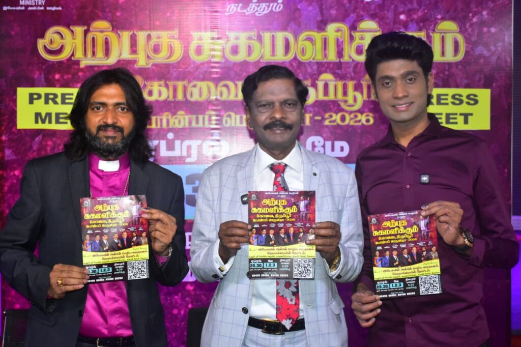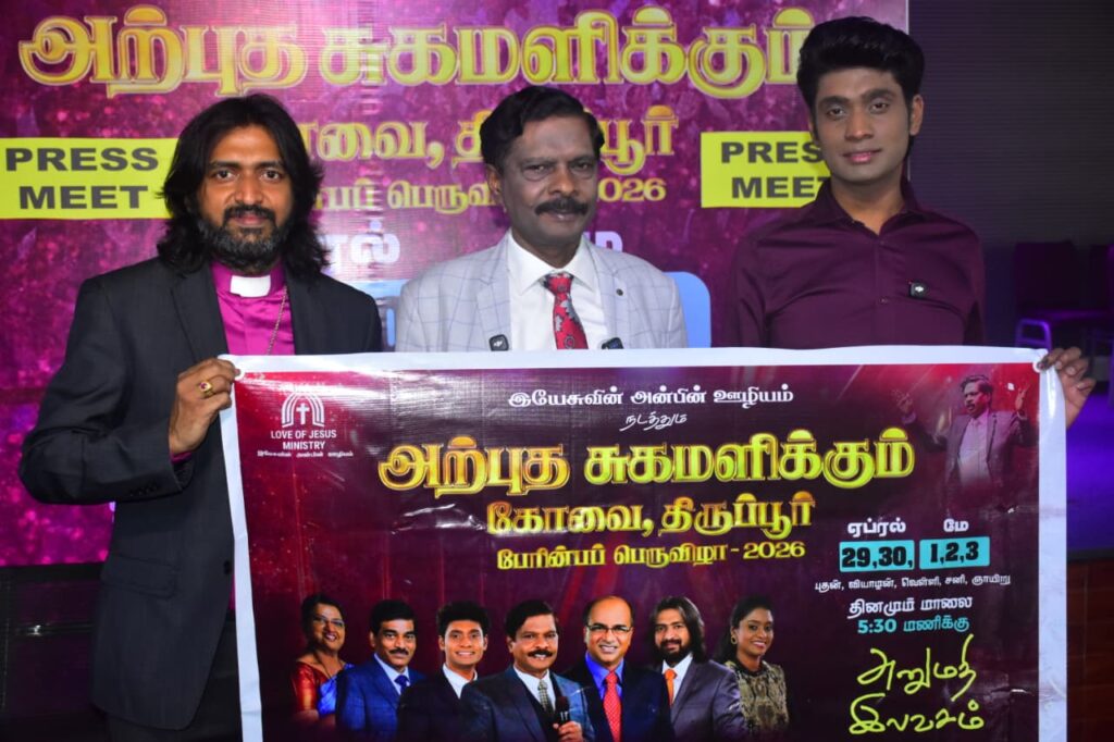 இயேசுவின் அன்பின் ஊழியம் சார்பாக கோவை,திருப்பூர் பேரின்ப பெருவிழா 2026 எனும் நிகழ்ச்சி கோவை திருப்பூர் இடையே உள்ள காரணம்பேட்டை பகுதியில் வரும் ஏப்ரல் 29 ந்தேதி துவங்கி மே 03 ந்தேதி வரை நடைபெற உள்ளது.