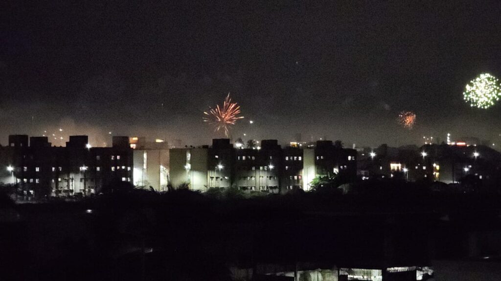பொதுமக்கள் தங்கள் வீடுகளில் உள்ள மாடியில் சென்று பல வகையான பூந்தொட்டிகள், மத்தாப்புகள், பல்வேறு வடிவங்களில் வானில் சென்று வெடிக்கும் பல வண்ண வானவேடிக்கைகள் வெடிக்கப்பட்டது, கம்போரின் கண்களை வெகுவாக கவரச் செய்தது ..