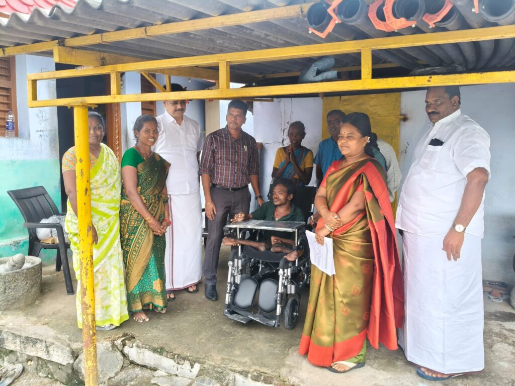 வெம்பக்கோட்டை ஒன்றியம் கொங்கன்குளம் கிராமத்தைச் சேர்ந்த பாண்டீஸ்வரன் என்ற மாற்றுத்திறனாளி மோட்டார் சைக்கிள் வழங்க வேண்டும் என கோரிக்கை மனு அளித்திருந்தார் . கொங்கன்குளம் கிராமத்திற்கு மாற்றுத்திறனாளி பாண்டீஸ்வரன் வீட்டிற்கு நேரில் சென்று பார்வையிட்டு கலெக்டர் சுகபுத்ரா உடனடியாக மோட்டார் சைக்கிள் வழங்க ஆணை வழங்கினார். சாத்தூர் எம்எல்ஏ ரகுராமன், வெம்பக்கோட்டை மேற்கு ஒன்றிய செயலாளர் ஜெய பாண்டியன், ஆகியோர் உடன் இருந்தனர்.