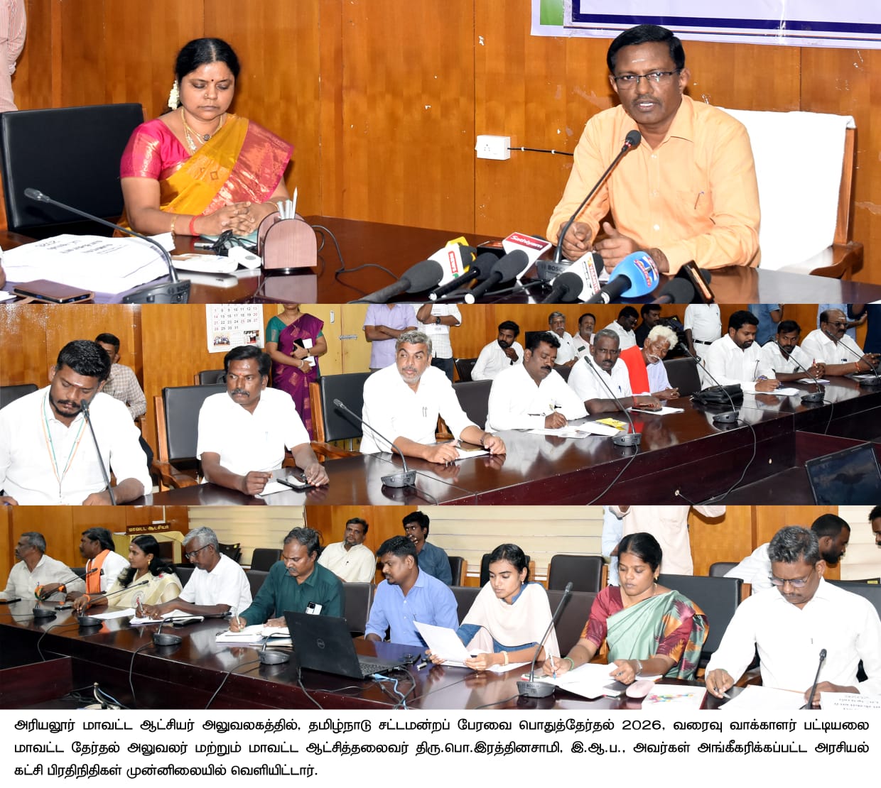 மேலும் அரியலூர் மாவட்டத்தில் வாக்காளர் பட்டியல் சிறப்பு தீவிர திருத்தம் தொடர்பாக அங்கீகரிக்கப்பட்ட அரசியல் கட்சி பிரதிநிதிகளுடன் மாவட்ட அளவில் 04 ஆய்வுக் கூட்டங்களும், வருவாய் கோட்டங்களில் 04 ஆய்வு கூட்டங்களும் நடத்தப்பட்டுள்ளது.