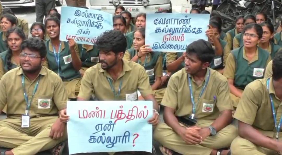 கரூரில் கடந்த 4 ஆண்டுகளாக மாநகராட்சிக்கு சொந்தமான திருமண மண்டபத்தில் இயங்கி வரும் அரசு வேளாண் கல்லூரிக்கு கல்லூரி கட்டிடம் உள்ளிட்ட அடிப்படை கட்டமைப்புகளை ஏற்படுத்தி தர வலியுறுத்தி கல்லூரி மாணவ, மாணவிகள் திடீர் சாலை மறியல் போராட்டத்தில் ஈடுபட்டதால் பரபரப்பு ஏற்பட்டது. அடுக்கடுக்கான பல்வேறு குற்றச்சாட்டுகள் முன்வைத்தனர்.