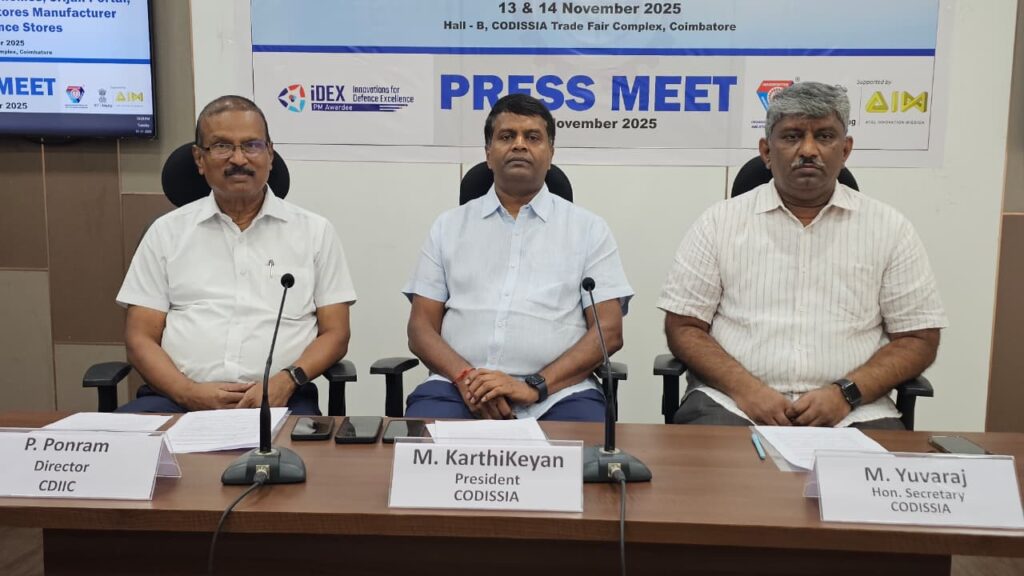 கொடிசியா இராணுவ புத்தாக்கம், மற்றும் அடல் இன்குபேஷன் சென்டர் நடத்தும் பாதுகாப்பு துறை உற்பத்தி சார்ந்த திட்டங்கள், ஸ்ரீஜன் போர்ட்டல், இரானுவத்திற்க்கு தேவையான தளவாட உற்பத்தி செய்வதற்கான பதிவு, அதற்கு தேவையான தரம் சார்ந்த இரண்டு நாள் கான்கிளேவ் நிகழ்ச்சியாக நடைபெற உள்ளது. இந்திய இரானுவ தளவாட உற்பத்தியில் தனியார் நிறுவனங்கள் தங்களது பங்களிப்பு மற்றும் நேரடி துறை சார்ந்த தொடர்பு கொண்டு வளர்ச்சி பெறுவதை நோக்கமாக கொண்டு இந்த கான்கிளேவ் நடைபெற உள்ளது என தெரிவித்தார்.