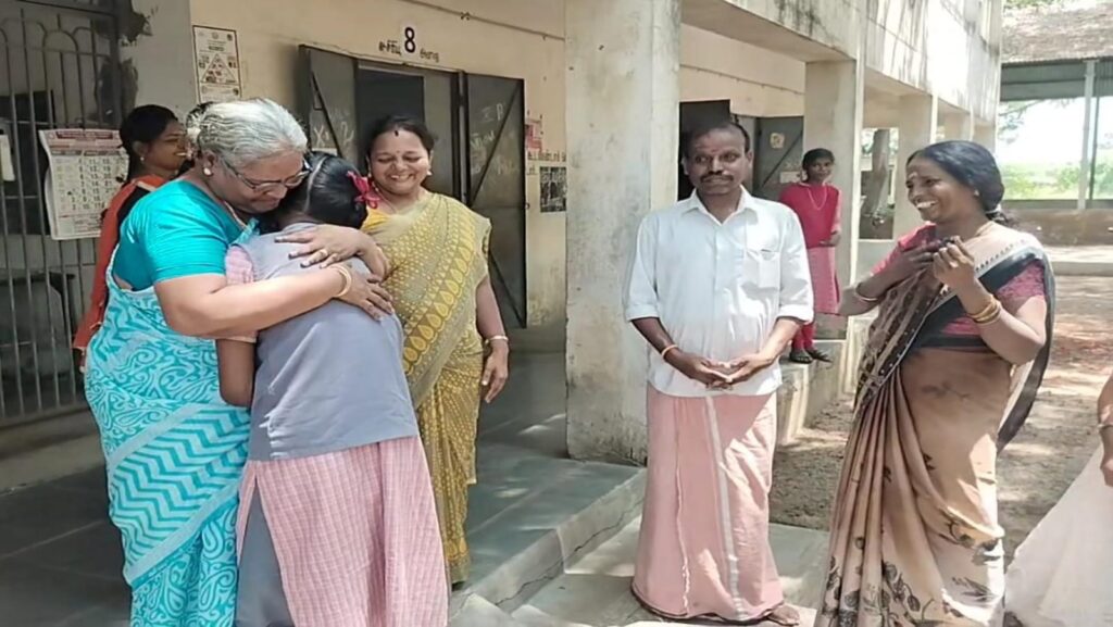 இந்நிலையில் மயிலாடுதுறை அடுத்த நீடூர் அரசு பெண்கள் மேல்நிலைப் பள்ளியில் பத்தாம் வகுப்பு பொது தேர்வு எழுதிய தர்ஷினி என்ற மாணவி 492 மதிப்பெண்கள் பெற்று அரசு பள்ளி அளவில் முதலிடம் எடுத்துள்ளார். இவரது தந்தை ஜோதி ராமன் என்பவர் தினக்கூலி அடிப்படையில் டைல்ஸ் போடும் வேலை செய்து வருகிறார். இன்று முதலிடம் பிடித்த மாணவிக்கு ஆசிரியர்கள் மற்றும் பெற்றோர்கள் வாழ்த்து தெரிவித்த நிலையில் கல்வி கற்பித்த ஆசிரியர் கட்டி அணைத்து வாழ்த்துக் கூறிய காட்சி நெகிழ்ச்சியை ஏற்படுத்தியது.