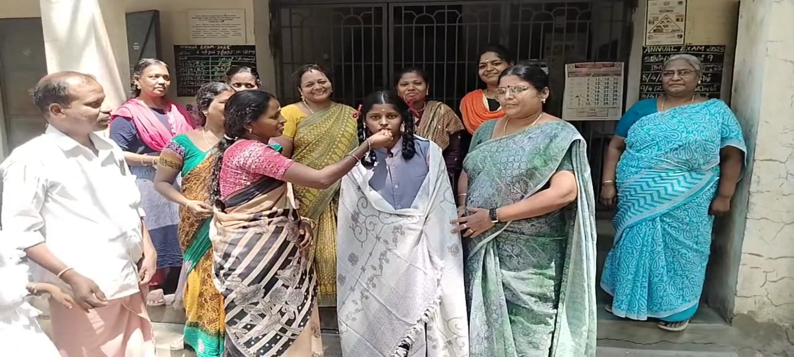 இந்நிலையில் மயிலாடுதுறை அடுத்த நீடூர் அரசு பெண்கள் மேல்நிலைப் பள்ளியில் பத்தாம் வகுப்பு பொது தேர்வு எழுதிய தர்ஷினி என்ற மாணவி 492 மதிப்பெண்கள் பெற்று அரசு பள்ளி அளவில் முதலிடம் எடுத்துள்ளார். இவரது தந்தை ஜோதி ராமன் என்பவர் தினக்கூலி அடிப்படையில் டைல்ஸ் போடும் வேலை செய்து வருகிறார். இன்று முதலிடம் பிடித்த மாணவிக்கு ஆசிரியர்கள் மற்றும் பெற்றோர்கள் வாழ்த்து தெரிவித்த நிலையில் கல்வி கற்பித்த ஆசிரியர் கட்டி அணைத்து வாழ்த்துக் கூறிய காட்சி நெகிழ்ச்சியை ஏற்படுத்தியது.