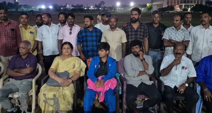 சீனாவில் நடைபெற்ற ஆசியா அளவிலானா 17 வயதிற்குட்பட்ட இரட்டையர் பிரிவு பேட்மிட்டன் போட்டியில் இந்தியாவிற்காக வெண்கலப்பதக்கம் வென்று புதுச்சேரி மாநிலத்திற்கும் காரைக்கால் மாவட்டத்திற்கும் பெருமை சேர்த்த அக்கம்பேட்டை மீனவ கிராமத்தை சேர்ந்த ரமேஷ் – கீதாமணி தம்பதியரின் மகள் ஜனனிகாவை புதுச்சேரி அமைச்சர் திருமுருகன், மாவட்ட ஆட்சியர் ரவி பிரகாஷ், துணை மாவட்ட ஆட்சியர் பூஜா, முதுநிலை காவல் கண்காணிப்பாளர் லட்சுமி சௌஜன்யா உள்ளிட்ட மாவட்டத்தில் பல்வேறு தரப்பினரும் பாராட்டு தெரிவித்துவரும் நிலையில் இன்று காரைக்கால் ஸ்டேடியத்தை பயன்படுத்துவோர், காரைக்கால் ஸ்டேடியம் குரூப்ஸ் என்ற பெயரில் அமைப்பை நடத்தி வருகின்றனர்.