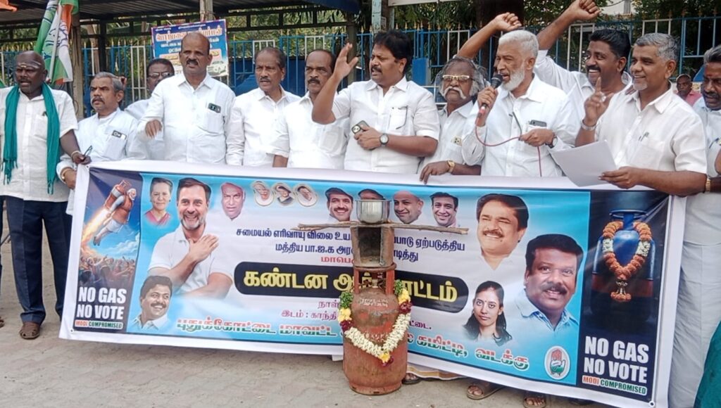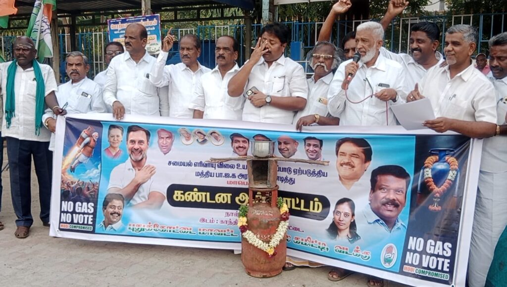மத்திய அரசின் மெத்தனப் போக்கினால் சமையல் எரிவாயு தட்டுப்பாடு ஏற்பட்டுள்ளதைக் கண்டிக்கும் விதமாக, காங்கிரஸ் மகளிர் அணியினர் மிகுந்த ஆவேசத்துடன் போராட்டத்தில் ஈடுபட்டனர். சிலிண்டர் விலை உயர்வு மற்றும் தட்டுப்பாட்டைச் சித்தரிக்கும் வகையில், சிலிண்டருக்கு மாலை அணிவித்து, அதற்கு ஒப்பாரி வைத்து பெண்கள் நூதன முறையில் எதிர்ப்பு தெரிவித்தனர்.