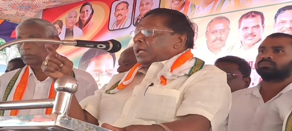 25 ஆண்டு காலம் ரங்கசாமி புதுச்சேரியை வீணாக்கி வருகிறார், அவரிடமிருந்து மக்களை காப்பாற்ற வேண்டும் எதிர்காலத்தை காப்பாற்ற வேண்டும் அதற்கு ரங்கசாமியிடமிருந்தும் பிஜேபி-யிடம் இருந்தும் புதுச்சேரியை காப்பாற்ற வேண்டும். பிஜேபிக்கு என்று தனி அடையாளம் கிடையாது அந்த அடையாளத்தை கொடுத்ததே ரங்கசாமி தான், புதிய கார் வாங்க வேண்டும்,மால் கட்ட வேண்டும், பெரிய ஓட்டல் கட்ட வேண்டும் என்றால் ரங்கசாமி வீட்டுக்கு சென்று தான் கட்ட வேண்டும் கடுமையாக சாடினார்.