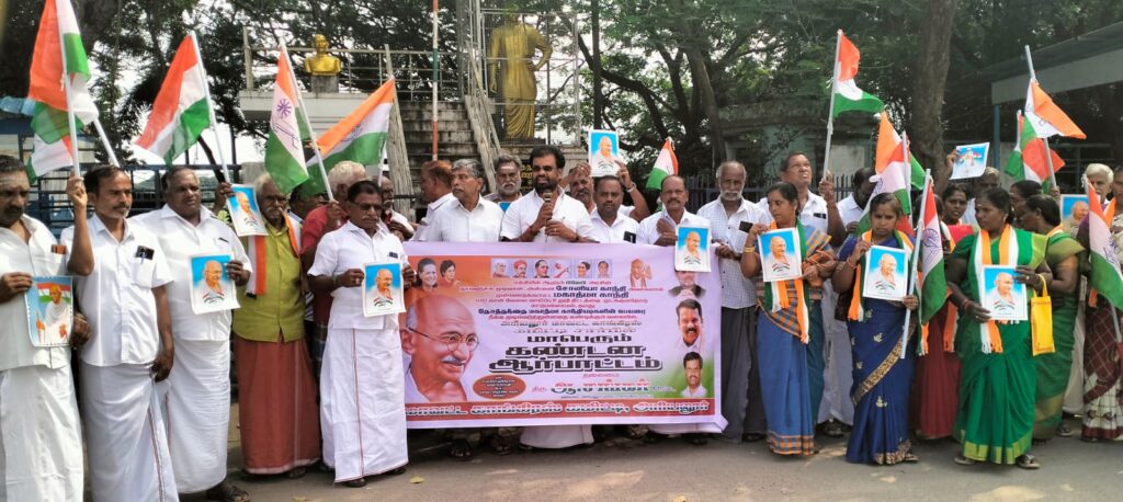 மகாத்மா காந்தி தேசிய ஊரக வேலைவாய்ப்பு உறுதி திட்டத்தில் மகாத்மா காந்தி பெயர் நீக்க நடவடிக்கை எடுக்கும் மத்திய அரசை கண்டித்து அரியலூர் பேருந்து நிலையம் அருகேயுள்ள காந்தி சிலை முன் காங்கிரஸ் கட்சியினர் ஆர்ப்பாட்டத்தில் ஈடுபட்டனர்.
