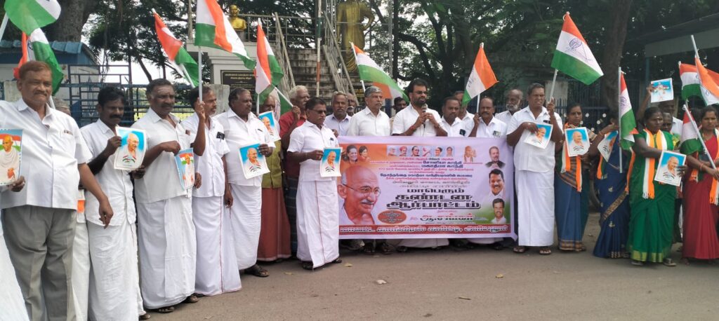ஆர்ப்பாட்டத்துக்கு அக்கட்சியின் மாவட்டத் தலைவர் ஆ.சங்கர் தலைமை வகித்தார். நகரத் தலைவர் மா. மு.சிவக்குமார்,மாவட்ட பொருளாளர் மனோகரன், பொதுக்குழு உறுப்பினர் ஆண்டிமடம் ராஜசேகர் மாவட்ட துணைத் தலைவர்கள் ஏ.பி.எஸ்.பழனிசாமி, ராகவன் , கலைச்செல்வன், வட்டார தலைவர்கள் பாலகிருஷ்ணன், திருநாவுக்கரசு, கர்ணன், கங்காதுரை, அழகானந்தம், மாவட்ட மாவட்டச் செயலாளர் ரவிச்சந்திரன், மாவட்ட இளைஞர் காங்கிரஸ் தலைவர் பாளை எம். ஆர், பாலாஜி,சாத்தமங்கலம் பாண்டியராஜன்,மகளிர் அணி நிர்வாகிகள் ரேணுகா தேவி, சகுந்தலா தேவி,நகர காங்கிரஸ் நிர்வாகிகள் ஏ ஆர் செந்தில்வேல் , அப்பாதுரை, அன்பழகன், உள்ளிட்டோர் கலந்து கொண்டு முழக்கமிட்டனர்.
