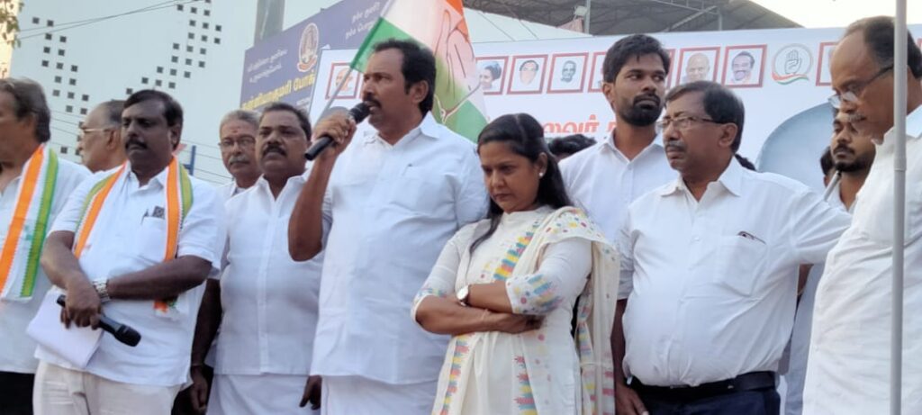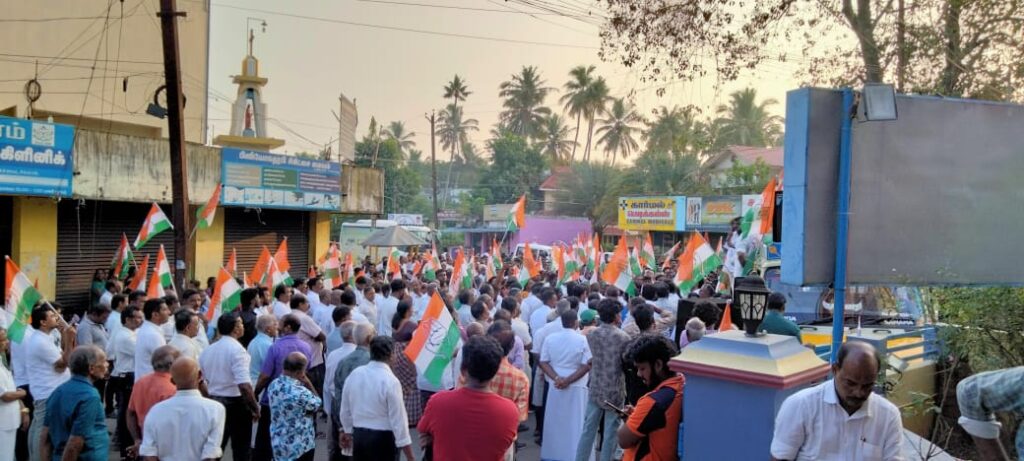 தமிழக காங்கிரஸ் சட்டமன்ற தலைவரும், கிள்ளியூர் சட்டமன்ற காங்கிரஸ் உறுப்பினர் ராஜேஷ் குமார் தலைமையில் நடைபெற்ற யூடியூபர் முக்தார் அகமதுவை கைது செய்ய தமிழக முதல்வர் ஸ்டாலின் உடனடியாக நடவடிக்கை எடுக்க வேண்டும் என்பதை வலியுறுத்தி நடந்த போராட்டத்தில். விளவங்கோடு சட்டமன்ற உறுப்பினர்
