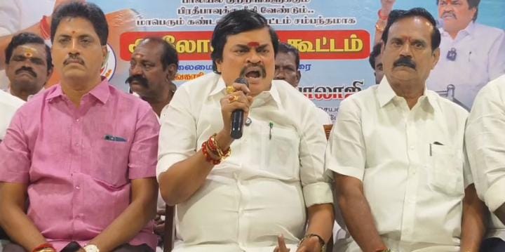 நம்மை எதிர்க்கின்ற துணிச்சல் எவனுக்கும் கிடையாது திமுகவிற்கு எந்த காலத்தில் கிடையாது என்பதை நிரூபிக்கும் வகையில் தொண்டர்கள் ஆர்ப்பாட்டத்தில் கலந்து கொள்ள வேண்டும்.