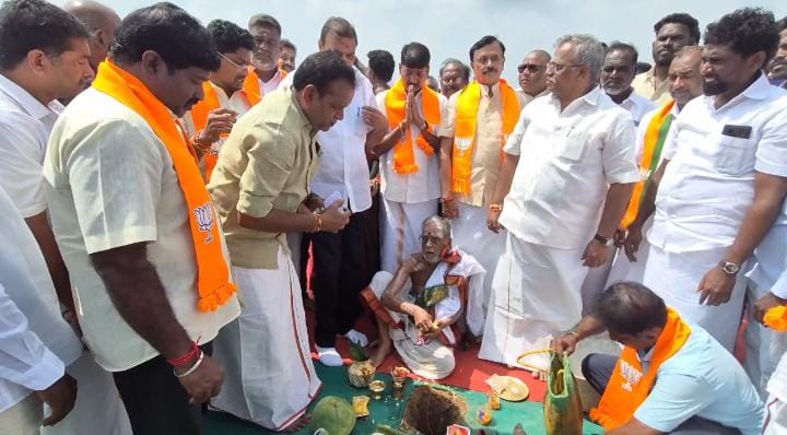 இதையொட்டி முன்னேற்பாடுகள் விறுவிறுப்புடன் நடைபெற்று வருகின்றன.சந்தை திடலில் மாநாட்டு மேடை அமைப்பதற்கான பணி பந்தக்கால் முகூர்த்தத்துடன் இன்று தொடங்கியது.பாஜக புதுச்சேரி மேலிட பொறுப்பாளர் நிர்மல் குமார் சுரானா,புதுச்சேரி சபாநாயகர் செல்வம்,பாஜக மாநில செய்தி தொடர்பாளர் அருள்முருகன், பாஜக மாவட்ட தலைவர் முருகதாஸ் உள்ளிட்ட பலர் பந்தக்கால் முகூர்த்தம் நிகழ்ச்சியில் கலந்து கொண்டனர்.தொடர்ந்து பாஜக மாவட்ட தலைவர் முருகதாஸ் தலைமையில் சந்தை திடல் பகுதியில் மாநாடு குறித்த ஆலோசனை கூட்டமும் நடைபெற்றது.