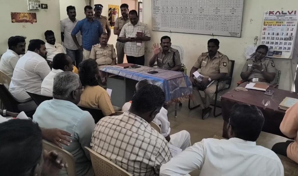 இதில் பெரியகுளத்தில் விநாயகர் சதுர்த்தி அன்று சிலை வைக்கும் இடத்தில் முறையாக அந்தந்த பகுதியில் உள்ள காவல் நிலையங்களில் விண்ணப்பங்கள் வழங்கி முறையாக அனுமதி பெற வேண்டும் அனுமதி வழங்கப்பட்ட இடங்களில் மட்டும் தான் சிலை வைக்க வேண்டும், விநாயகர் சக்தி அன்று கடந்த ஆண்டு சிலை வைத்த இடங்களுக்கு மட்டும் தான் அனுமதி புதிதாக சிலை வைக்க அனுமதிக்கப்படாது, சிலை வைத்த இரண்டு நாட்களும் சிலை பொறுப்பாளர்கள் மற்றும் நிர்வாகிகள் 24 மணி நேரமும் பாதுகாப்பில் இருக்கிறது அவசியம், விநாயகர் சிலை உயரம் 10 அடிக்குள் இருக்க வேண்டும், சிலை வைக்கும் இடத்தில் மண் தண்ணீர் உள்ளிட்ட பொருட்கள் தயார் நிலையில் வைத்திருக்க வேண்டும்.