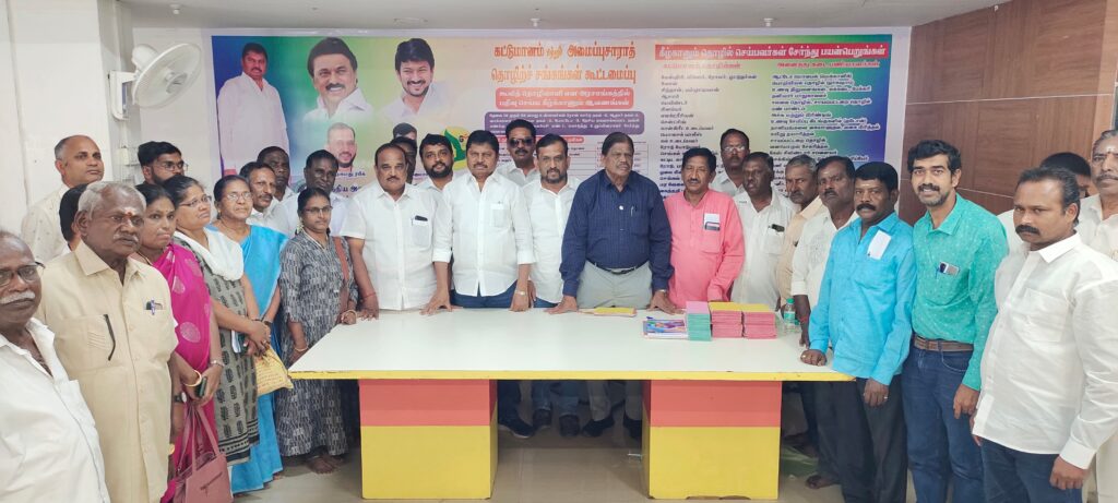 கூட்டத்தில், கட்டுமானம் மற்றும் அமைப்புசாரா தொழிலாளர்கள் கூட்டமைப்பின் மாநில தலைவரும், தமிழ்நாடு கட்டுமான தொழிலாளர்கள் நல வாரியத்தின் தலைவர்
