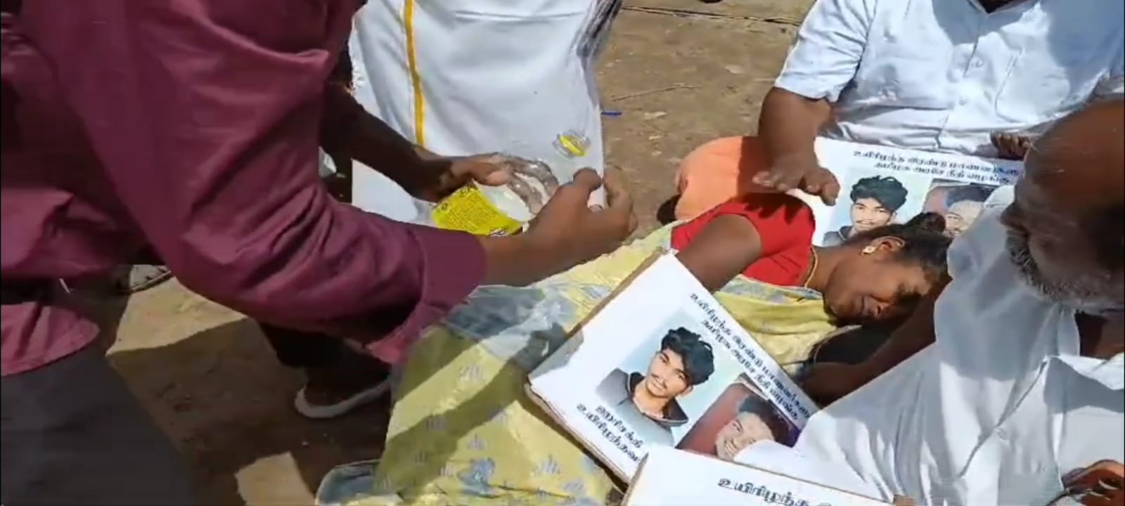 கண்டன ஆர்ப்பாட்டத்தில் இளைஞரின் தாயார் மயங்கி விழுந்ததால் பரபரப்பு..