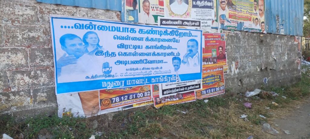 மதுரையில் காங்கிரஸ் தொண்டர் ஒட்டிய சுவரொட்டியால் சர்ச்சை..,