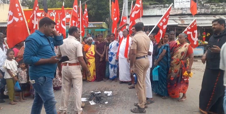 மாநில தலைவர் ரவீந்திரன் மத்திய அரசுக்கு எதிரான கண்டன கோஷங்களை எழுப்பினார். விதை மசோதா 2025 ரத்து செய், மின்சார திருத்த சட்டம் 2025 ரத்து செய், தொழிலாளர் நலச் சட்டங்கள் நான்கு தொகுப்புகள் ஆக்கியதை திரும்பப்பெறு என்று கண்டன கோஷங்கள் எழுப்பப்பட்டன. இதில் நிர்வாகிகள் குருசாமி ,ரத்தினம், கந்தவேல் உட்பட 50க்கும் மேற்பட்டோர் கலந்து கொண்டனர்.