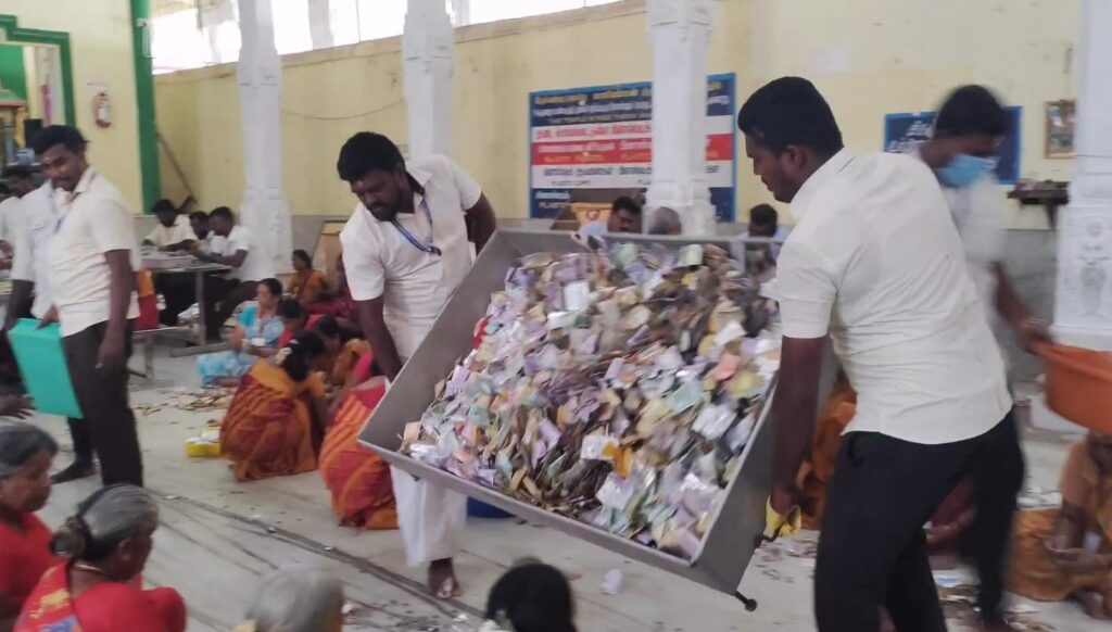 மேலும் உண்டியல் காணிக்கை எண்ணும் பணியில் ஏராளமான பெண் பக்தர்கள் மற்றும் கோவில் ஊழியர்கள் ஈடுபட்டனர்.