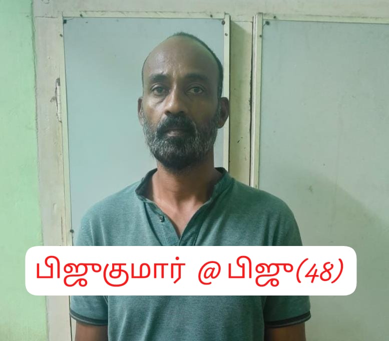 மேற்படி உத்தரவின்படி எரிசாராயம் விற்பனைக்கு பதுக்கி வைத்து இருந்த வழக்கு குற்றவாளியான பிஜுகுமார் @ பிஜு (48) என்பவரை குண்டர் (Bootlegger) தடுப்பு சட்டத்தின் கீழ் சிறையில் அடைத்தனர்.