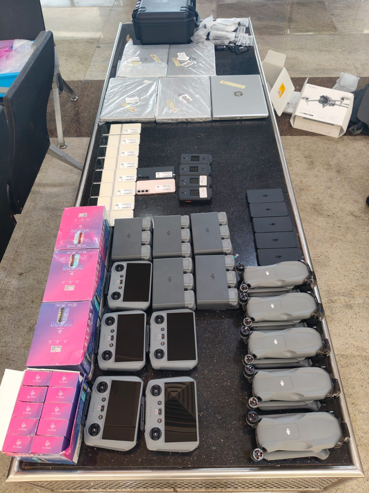 மதுரை விமான நிலையத்தில் இன்று ஸ்பைஸ் ஜெட் விமானத்தில் துபாயில் இருந்து மதுரை வந்த பயணியிடம் ரூபாய் பதினோரு லட்சத்து அறுபத்து நாளாயிரம் 11, 64,000/- மதிப்புள்ள ட்ரோன் கேமராக்கள் லேப்டாப்கள் மொபைல் போன்கள் சுங்கத்துறை அதிகாரிகள் பறிமுதல் செய்துள்ளனர்.