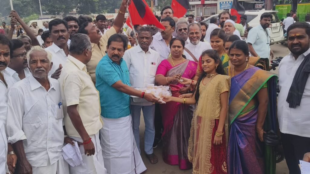 இதில் திண்டுக்கல் மாநகர செயலாளர் ராஜப்பா மற்றும் துணை செயலாளர் இளமதி ஜோதிபிரகாஷ் பொதுமக்களுக்கு இனிப்புகள் வழங்கினர். உடன் நிர்வாகிகள் பலர் கலந்து கொண்டனர்.