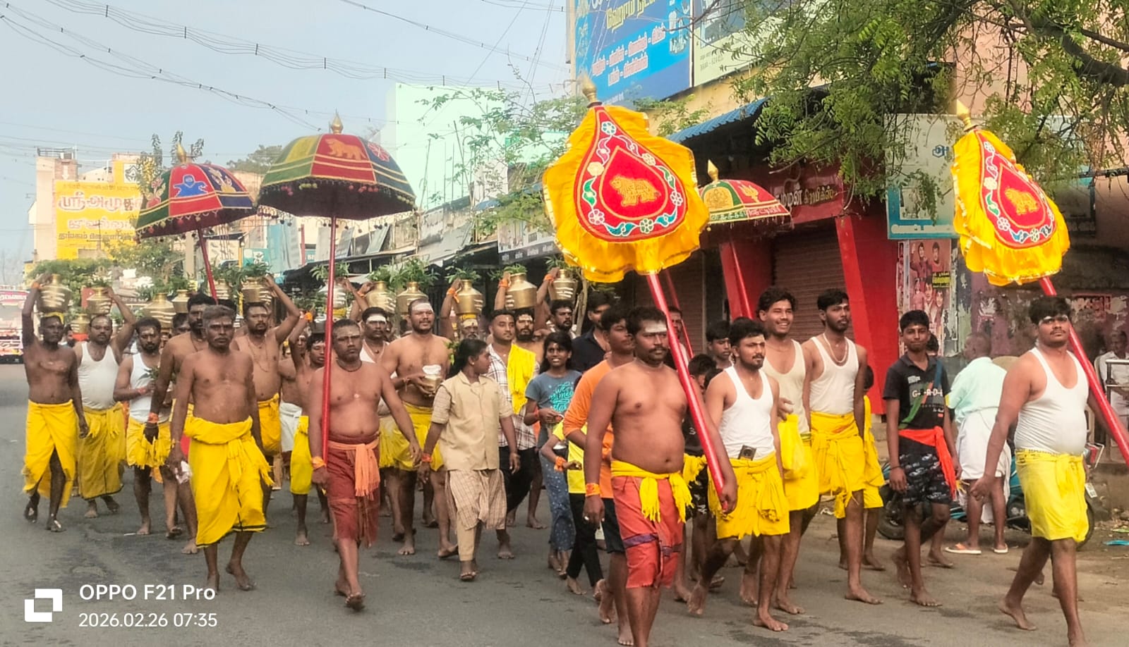 நத்தம் அருள்மிகு ஸ்ரீ மாரியம்மன் மாசி பெருந்திரு விழாவில் அபிஷேக தீர்த்தம் எடுத்து வந்து வழிபாடு நடத்தினர்.