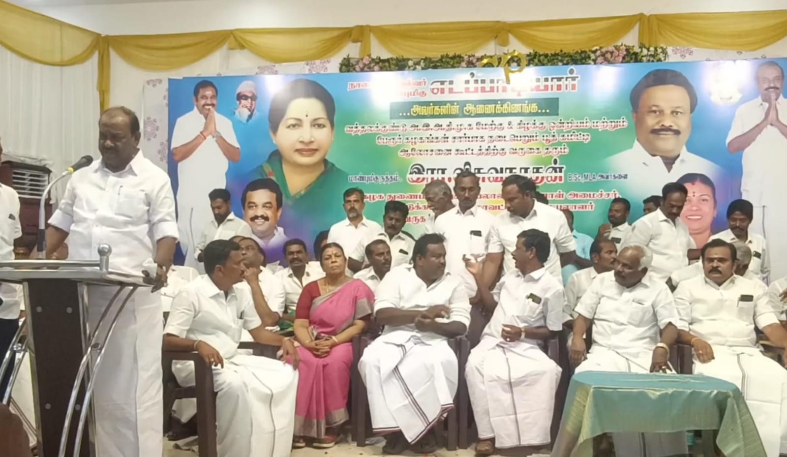 மேடையில் இருந்த அதிமுக நிர்வாகிகள் சாப்பிட சென்றவர்களை மீண்டும் அமரச் சொல்லி அழைத்தபோதும் யாரும் அதை காதில் வாங்கிக் கொள்ளவில்லை.