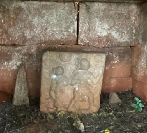 திண்டுக்கல், அழகுபட்டி மாலைகோவில்பட்டி ஓடை அருகே, வீரர் ஒருவருடன் பெண் இருந்த நடுகல் கண்டெடுக்கப்பட்டது.