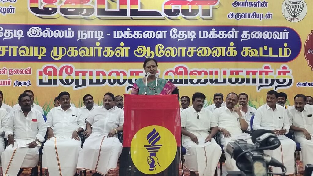 தேமுதிகவை பார்த்து பலரும் வியந்து போயிருக்கிறார்கள் என்றும் ஆளும் கட்சியும் இல்லை தற்போது ஆண்ட கட்சியும் இல்லை ஆனால் நம்முடைய கட்சி உள்ளது நாம் தேர்தலுக்கு தயாராக வேண்டும் என தெரிவித்தார். மேலும் இங்குள்ள ஒவ்வொரு ஆண்களும் கேப்டன் தான் பெண்கள் ஒவ்வொருவரும் லேடி கேப்டன் தான் என தெரிவித்த அவர் கேப்டன் ஒரு புறம் லேடி கேப்டன் ஒரு புறம் இருக்கும் வரை இந்த கட்சியை யாராலும் தொட முடியாது. 2026 இல் தேமுதிக மிகப்பெரிய வெற்றியை பெரும் என தெரிவித்தார்.