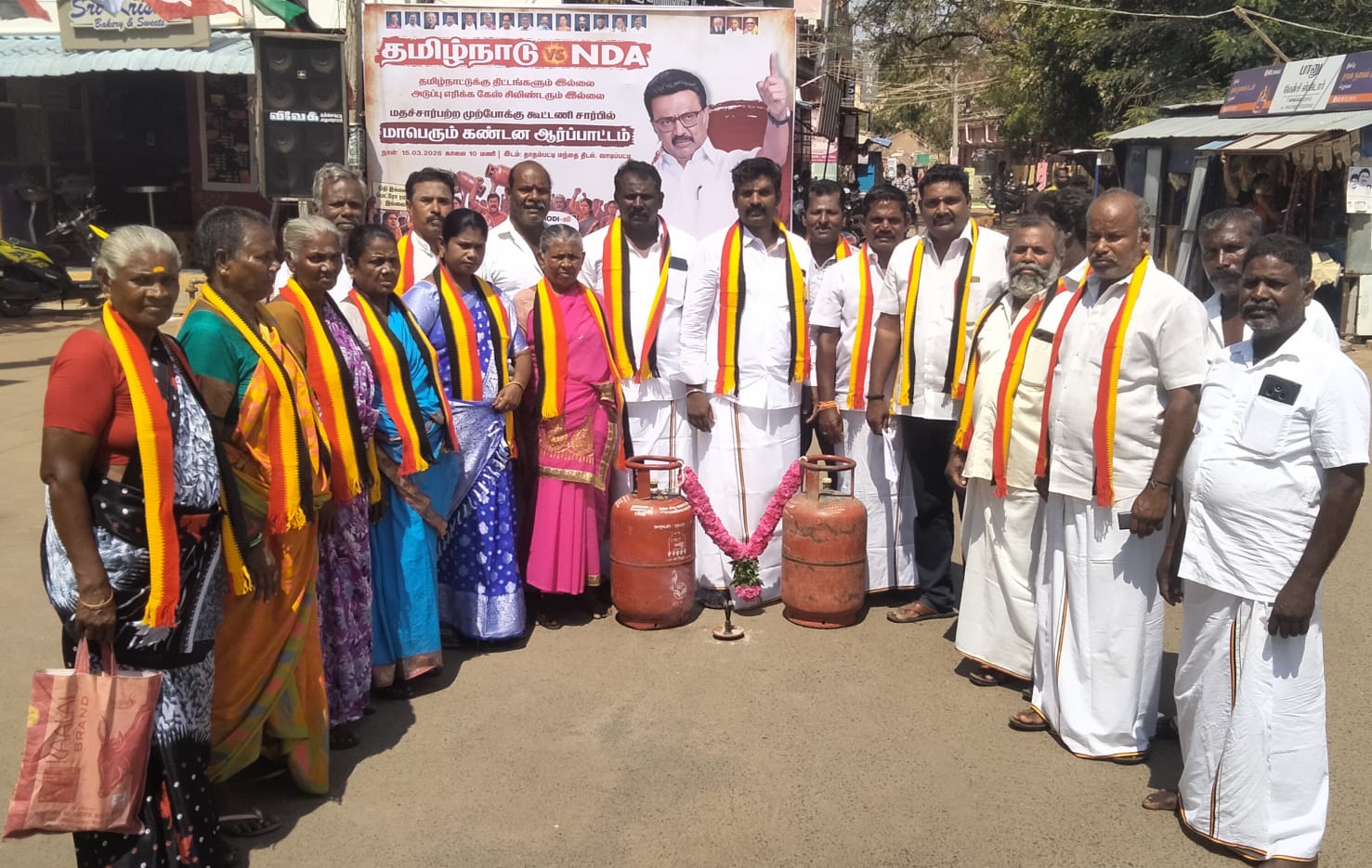 வாடிப்பட்டியில் திமுக கூட்டணி கட்சிகள் ஆர்ப்பாட்டம்..,