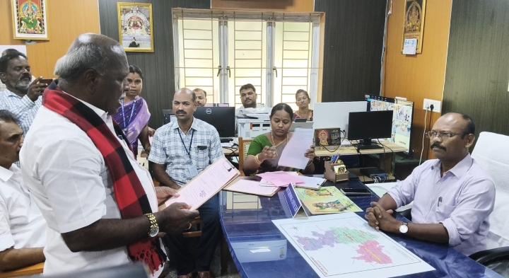 வருவாய் கோட்டாட்சியர் அலுவலகம் சென்ற வேட்பாளர் கடற்கரைராஜ் தேர்தல் நடத்தும் அலுவலர் கனகராஜ் அவர்களிடம் தனது வேட்பு மனுவினை தாக்கல் செய்தார்.