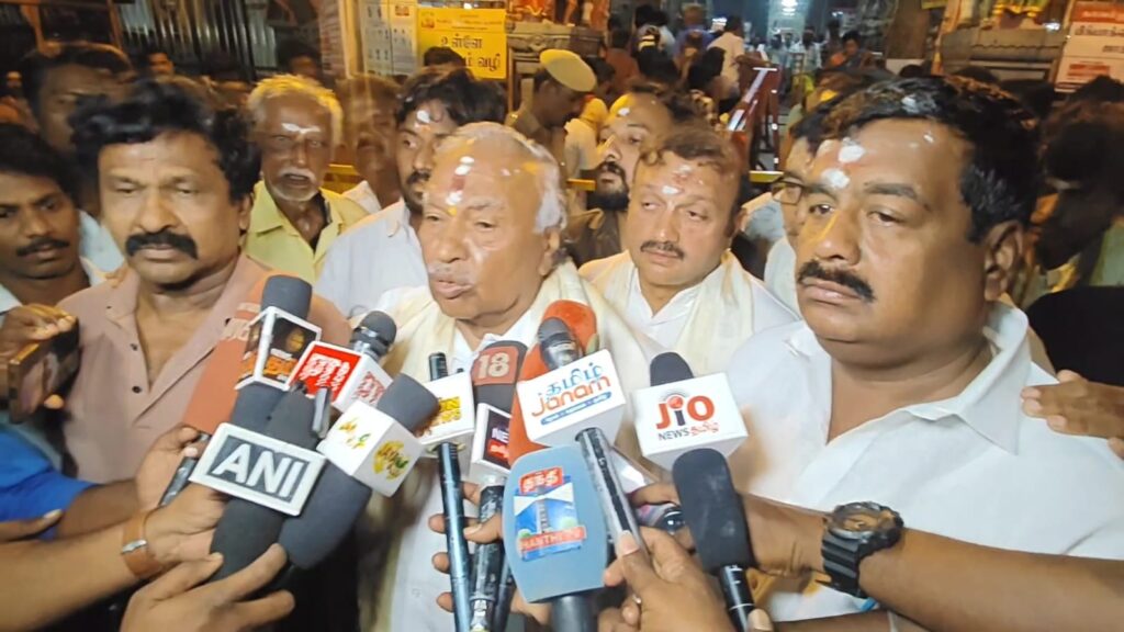 கர்நாடகா முன்னாள் துணை முதல்வர் ஈஸ்வரப்பா திருப்பரங்குன்றம் அருள்மிகு சுப்பிரமணியசுவாமி திருக்கோவிலில் இன்று மாலை சாமி தரிசனம் செய்தார். தொடர்ந்து செய்தியாளர்களை சந்தித்து அவர் கூறியதாவது: