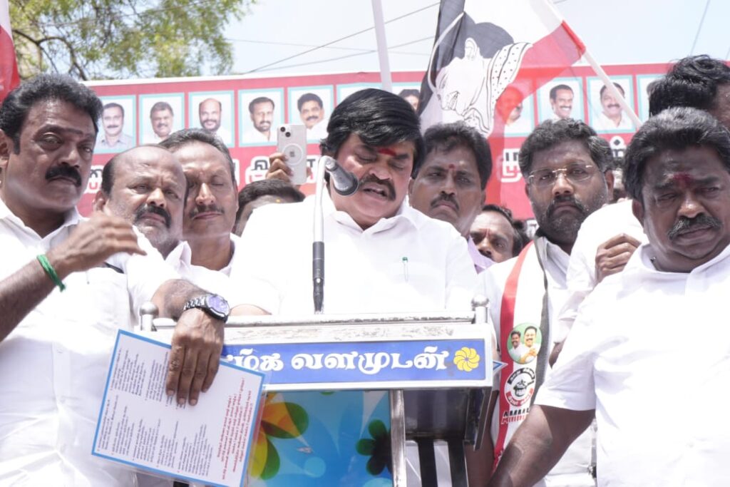 மேலும் ஆர்ப்பாட்டத்தில் பேசிய முன்னாள் அமைச்சர் கே.டி இராஜேந்திர பாலாஜி பேசிய போது, திமுக ஆட்சியின் அவலம் இன்றும் தொடர்வதாகவும் அதிமுக நிர்வாகிகள் மக்கள் மகிழ்ச்சி அடைய கூடிய தேர்தல் இது திமுகவிற்கு முடிவுரை எழுத மக்கள் தயாராகி உள்ளார்கள் என்றார்.