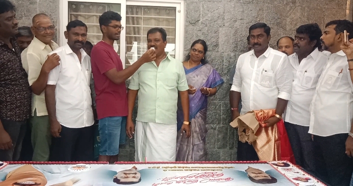 இந்த நிகழ்ச்சியில் புனித தோமையார் மலை கழக ஒன்றிய செயலாளர் ஜி.வெங்கடேசன். தலைமையில் எம்எல்ஏ அரவிந்த் ரமேஷ் அவர்களின் இல்லத்தில். தன் கழகத் தோழர்களுடன். அவருடைய வயது 58. அந்த வயதுக்கு ஏத்த எடையுள்ள மிகப் பிரம்மாண்டமான கேக்கை தோழர்களுடன் கேக் வெட்டி மாலை அணிவித்து மரியாதை செய்தனர்.