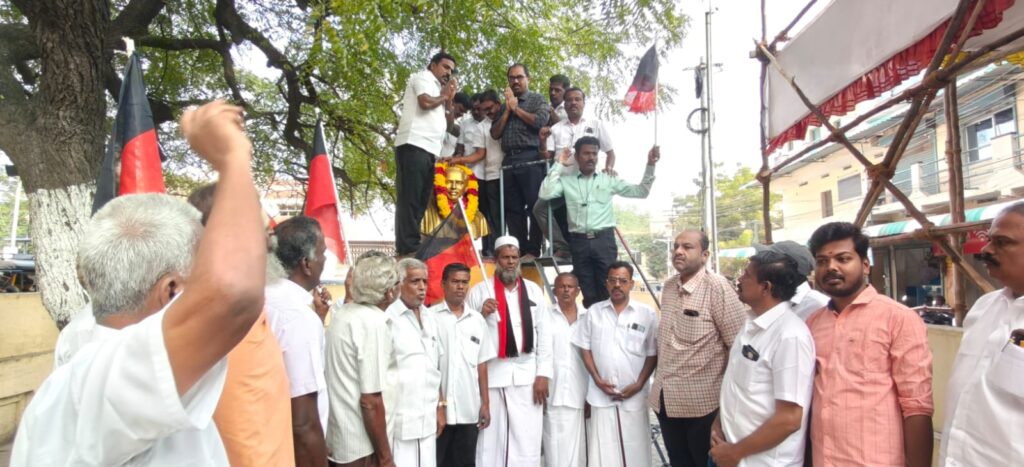 சிவகாசி மாநகர பகுதி கழக செயலாளர் காளிராஜன் தலைமையில் கட்சி நிர்வாகிகள் இணைந்து அறிஞர் அண்ணாவின் கொள்கைகளை முழக்கங்களாக எழுப்பி உறுதிமொழி ஏற்றனர்.