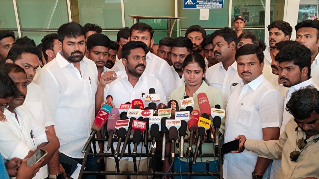 தி.மு.க மாணவரணி மாநில செயலாளர் வழக்கறிஞர் ராஜீவ்காந்தி கோவை விமான நிலையத்தில் செய்தியாளர்களை சந்தித்து பேசினார். அப்பொழுது அவர் பேசும் போது :-