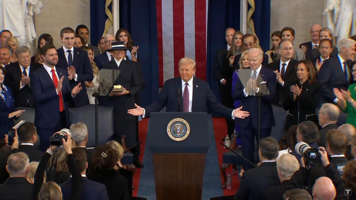 அமெரிக்காவின் 47-வது அதிபராக டொனால்ட் ட்ரம்ப் நேற்று பதவியேற்று கொண்டார். அந்நாட்டின் உச்சநீதிமன்ற தலைமை நீதிபதி ஜான் ராபர்ட்ஸ் அவருக்குப பதவிப் பிரமாணம் செய்து வைத்தார். அவர் பதவியேற்பதற்கு முன் அமெரிக்க பாரம்பரிய முறைப்படி, துணை குடியரசு தலைவராக வான்ஸ் பொறுப்பேற்று கொண்டார்.