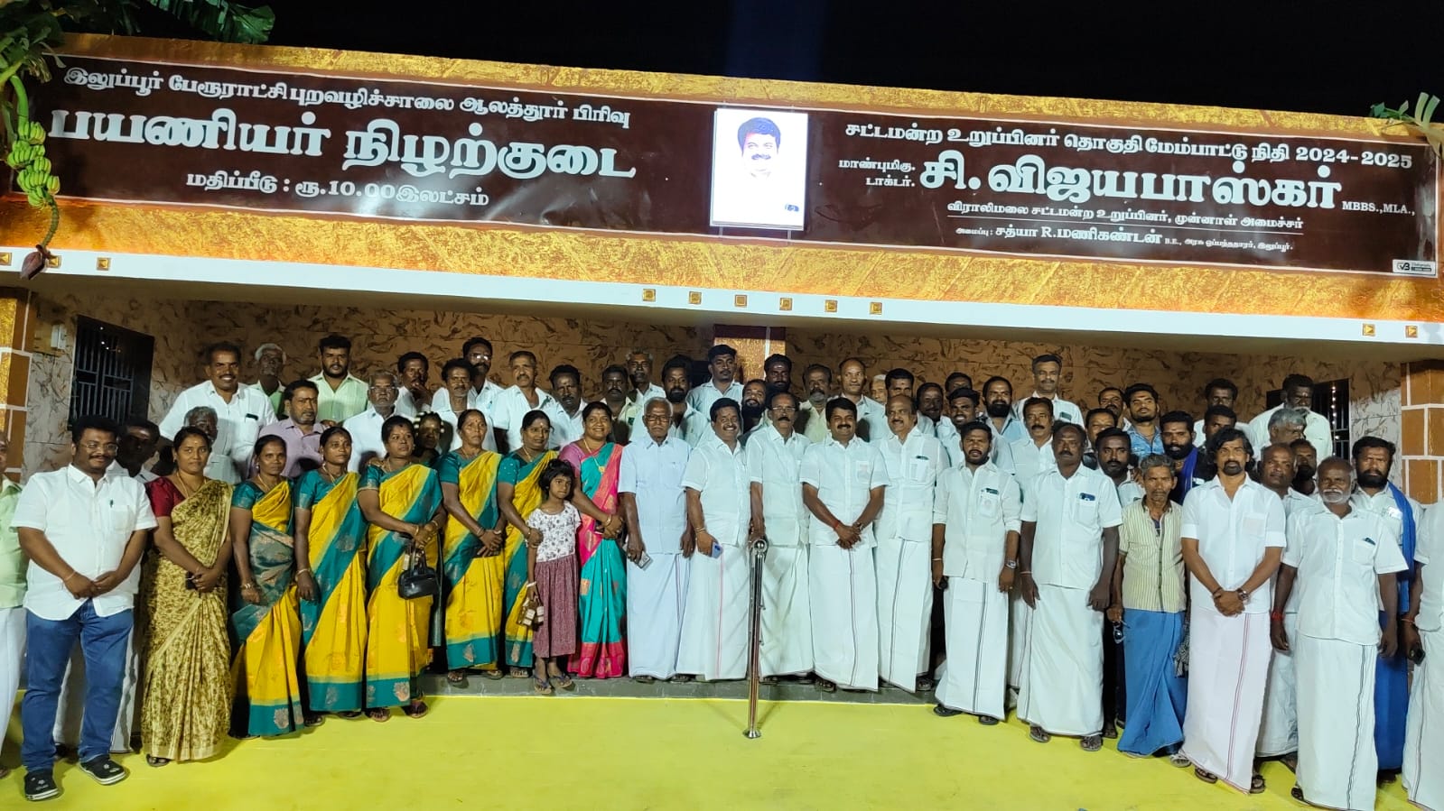 புதுக்கோட்டை மாவட்டம் விராலிமலை சட்டமன்றத் தொகுதி இலுப்பூர் பேரூராட்சி உட்பட்ட ஆலத்தூர் இடையபட்டி பிரிவு சாலையில் புதிய பயணியர் நிழற்குடையை சட்டமன்ற உறுப்பினர் தொகுதி மேம்பாட்டு நிதியிலிருந்து ரூபாய் 10 லட்சம் ஒதுக்கீடு செய்து அதற்கான கட்டுமான பணிகள் தொடர்ந்து நடைபெற்று முடிவடைந்தது, இன்று மாலை அந்த புதிய பயனியர் நிழற்குடையை முன்னாள் அமைச்சரும், விராலிமலை தொகுதி சட்டமன்ற உறுப்பினருமான டாக்டர்.சி.விஜயபாஸ்கர் பொதுமக்கள் முன்னிலையில் மக்கள் பயன்பாட்டிற்காக திறந்து வைத்தார்.