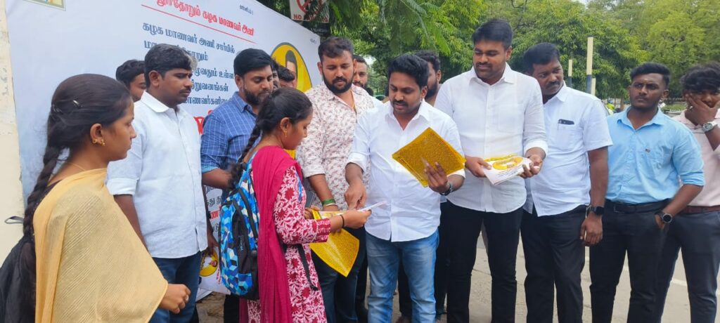 தமிழகத்தில் கல்விக்கே முக்கியத்துவம் அளித்து செயல்பட்டு வரும் முதல்வர் மு.க.ஸ்டாலின் தலைமையிலான அரசின் முயற்சிகளை, மாணவர்களிடம் எடுத்துச் செல்லும் விதமாக திராவிட முன்னேற்றக் கழக மாணவரணி முக்கிய பிரச்சாரத்தினை இன்று தொடங்கி உள்ளது.
