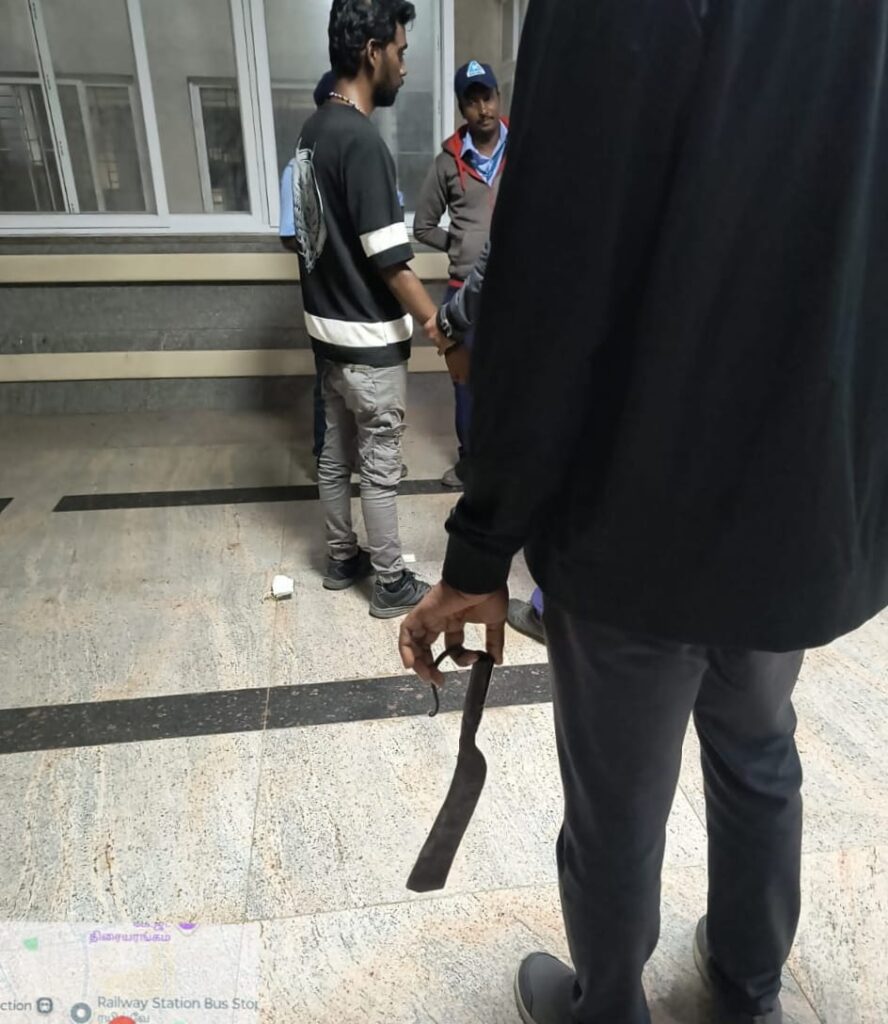 அப்போது அச்சம் அடைந்த அந்த செவிலியர் பின்னோக்கி செல்கிறார். மேலும் உள்ளே இருக்க கூடிய மற்றொரு நபரை சந்தித்து விட்டு அந்த ஆசாமி வெளியேறுகிறார். அங்கு உள்ள பாதுகாப்பு ஊழியர்களிடம் தெரிவித்த நிலையில் அவர்கள் அதில் ஒருவரை பிடித்த போது, கையில் ஆயுதத்துடன் இருந்து உள்ளார். இருவரும் கஞ்சா போதையில் இருந்ததாக கூறப்படுகிறது .